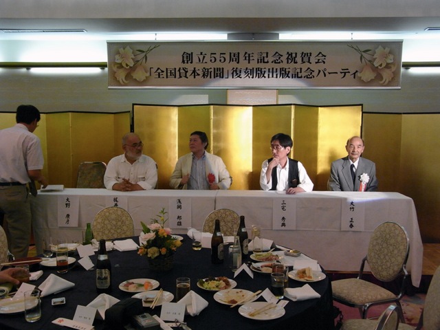 「『全国貸本新聞』復刻出版記念パーティ」では、その出版の意義を、版元の不二出版大野氏の司会のもと、浅岡邦雄氏(中京大学文学部言語表現学科准教授)、大竹正春氏(元貸本店「大竹文庫」経営者)、梶井、三宅が語った。